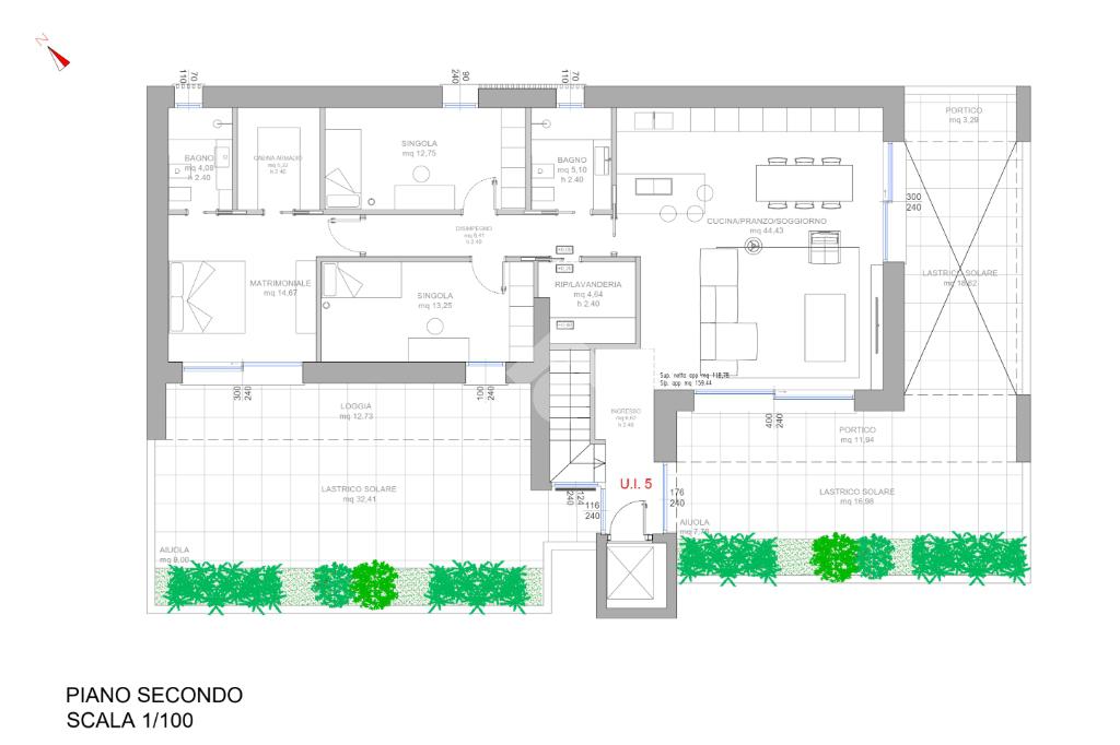Appartamento 5 Piano secondo - euro; 495.000: Attico con tre camere, guardaroba e 3 bagni all'ultimo piano con esposizione Sud/Est/Ovest con una superficie interna di 159mq.