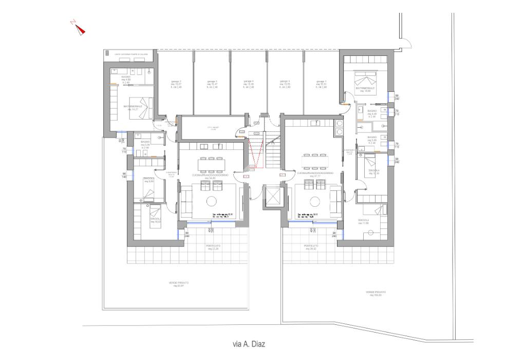 Appartamento 2 Piano terra - euro; 340.000: Tre camere e 2 bagni con esposizione Nord/Ovest ed una superficie interna di 109mq.