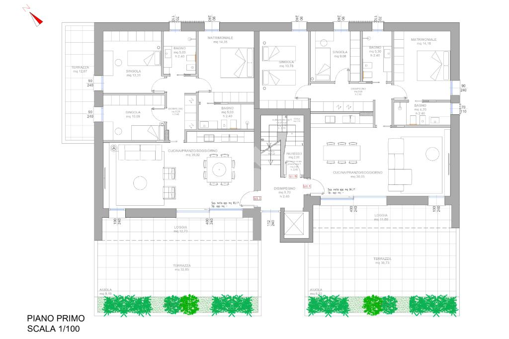 Appartamento 4 Piano primo - euro; 360.000: Tre camere e 2 bagni con esposizione Sud/Est ed una superficie interna di 117mq.