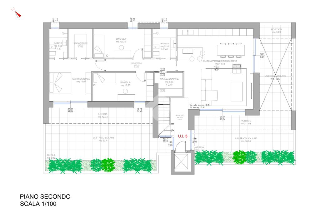 Appartamento 5 Piano secondo - euro; 495.000: Attico con tre camere, guardaroba e 3 bagni all'ultimo piano con esposizione Sud/Est/Ovest con una superficie interna di 159mq.